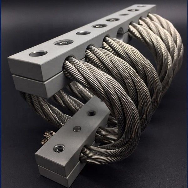 Wire isolation mounts are comprised of stainless steel stranded cable threaded through aluminum retaining bars that are mounted for effective shock and vibration isolation.